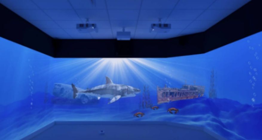 “The projectors will create a wrap-around effect when used alongside edge blending software and Showmagic software allows different themes and environments to be used (both software is included). Wrap around projections allow children to be ‘in’ the ocean when learning about the ocean, for example.